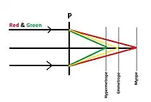 - ↑ Colligon-Bradley, P (1992). "Red-green Duochrome Test". Journal of Ophthalmic Nursing and Technology. 11 (5): 220–2. PMID 1469739.