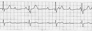 Causes may include ischemic heart disease, certain medications, electrolyte abnormalities, Lyme disease, lupus, and following heart surgery.[1] Medications that may be involved include antiarrhythmics and digoxin.[1] In some cases the cause is unclear.[1] Diagnosis is by electrocardiogram (ECG), which typically shows a ventricular rate of less than 50 BPM and independent but faster atrial activity.[1] The QRS complex can be narrow or wide.[1] It is a type of atrioventricular block.[2]