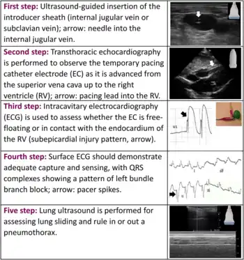 - ↑ Blanco, P (4 April 2019). "Temporary transvenous pacing guided by the combined use of ultrasound and intracavitary electrocardiography: a feasible and safe technique". The ultrasound journal. 11 (1): 8. doi:10.1186/s13089-019-0122-y. PMID 31359249.