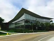 The School of Medicine neighborhood occupies 54 acres on the southern portion of the main campus. It is bordered by Gilman Drive and Revelle College to the west, Gilman Drive and University Center to the north, Villa La Jolla Drive and the San Diego VA Medical Center to the east, and La Jolla Village Drive to the south. The main entrances to the campus are via Library Walk for pedestrians and Osler Lane for vehicles. The neighborhood's buildings are arranged around a series of three green spaces: the School of Medicine Quad, the Ceremonial Green, and the Academic Mall.[8] The School of Medicine quad is an informal, grassy area which channels pedestrians from Revelle College and Library Walk toward Sally T. WongAvery Library and the adjacent academic and research facilities. The Ceremonial Green is a quadrantal lawn which is used for graduation ceremonies and other outdoor functions in front of the Medical Education and Telemedicine Building. The Academic Mall is a structured, flat quadrangle with gathering spaces and academic and research facilities along its east and west edges, and the Rita Atkinson Residences (medical student housing) at its southern terminus.