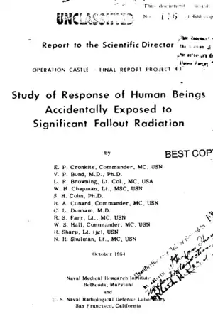 Cover of the final report of Project 4.1, which examined the effects of radioactive fallout on the natives of the Marshall Islands
