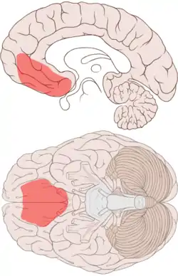![]() Medial surface of the brain with Brodmann's areas numbered. | |