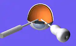 Lensectomy – In some cases, a lensectomy, or "cataract surgery", is done in conjunction with the vitrectomy. This extra procedure is performed when the lens of eye is cloudy (cataract), damaged during the vitrectomy, if there is attached to scar tissue, or if the pressure in the eye needs to be lowered (as in the case with some glaucomatous patients).[7]