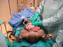 In the United States, the Animal Welfare Act explicitly requires that any procedure that may cause pain use "tranquilizers, analgesics, and anesthetics" with exceptions when "scientifically necessary".[8] The act does not define "scientific necessity" or regulate specific scientific procedures,[9] but approval or rejection of individual techniques in each federally funded lab is determined on a case-by-case basis by the Institutional Animal Care and Use Committee, which contains at least one veterinarian, one scientist, one non-scientist, and one other individual from outside the university.[10]
