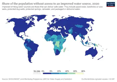 - ↑ "Drinking-water". WHO. 21 March 2022. Fact sheet. Archived from the original on 30 September 2021. Retrieved 23 February 2023.