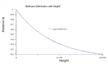 In the atmosphere, particles are pulled downwards by gravity. They gain and lose gravitational potential energy (mgh) due to collisions with each other. First, let's consider a small chunk of the atmosphere. It has horizontal cross-sectional area A, height dh, molecular density (the number of molecules per. unit volume) n and all the molecules have mass m. Let the number of particles in the chunk be N.