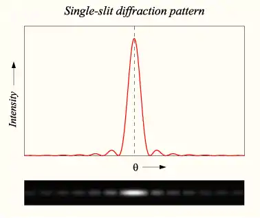 We have already seen why fringes are visible when light passes through multiple slits. However, this does not explain why, when light is only passing through 1 slit, a pattern such as the one on the right is visible on the screen.
