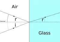 Refraction is when light changes velocity when it travels across the boundary between two materials. This causes it to change direction. The angle between the normal and the refracted ray of light is known as the angle of refraction (r).