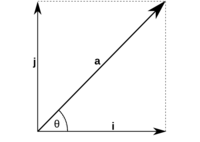 Consider the diagram on the right. The vector a consists of a vertical component j and a horizontal component i. a has a modulus |a|. |i| and |j| can be calculated using |a|, the angle between i and a θ and some basic trigonometry. We know that: