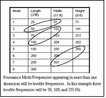 Standing waves can distort noises 300 Hz and down. These noises include the lower mid frequency and bass ranges. Standing waves tend to collect near the walls and in corners of a room, these collecting standing waves are called room resonance modes.