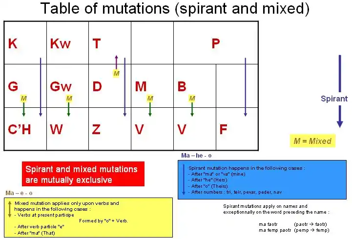 Here is a presentation of the rules regarding the mutations after the aticle :