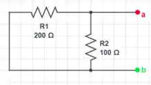 Circuit with voltage source shorted so can compute resistance between points a and b.