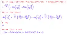 io := exp(-11*t/16)*(A*cos(7*t/16) + B*sin(7*t/16))
