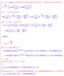 i_u := exp(-11*t/16)*(0.142578125 * cos(7*t/16) - -0.9829799107*sin(7*t/16))