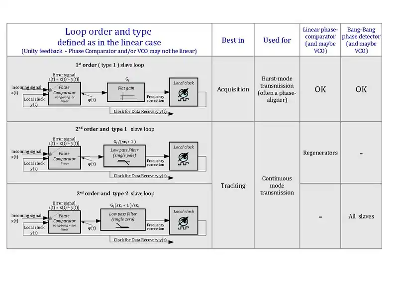 - The widespread (and often inevitable) use of essentially non-linear phase comparators (bang-bang) leads to the use of the more tolerant and robust architectures. (The gain of the bang-bang phase detector is not fixed, but varies with the phase difference at its inputs).