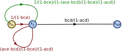 's outflow is then eliminated: is connected directly to using the product of the gains from the two edges replaced.