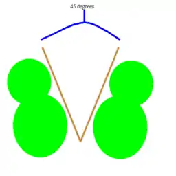 To ensure similar angles throughout the ensemble, groups that use feet-45 typically have guides made of wood or heavy cardboard that they can place between the performer's feet to set them at the correct angle. The performer lines his feet up along both arms of the footguide and memorizes the feeling in his ankles and upper thigh, and then recreates that feeling whenever he is standing with the ensemble.