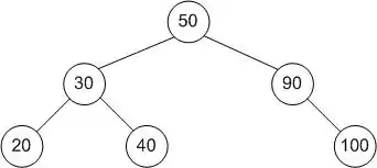 1. The root node is 50, which is greater than 40, so you go to 50's left child.