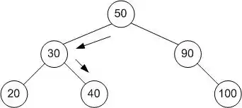 2. 50's left child is 30, which is less than 40, so you next go to 30's right child.