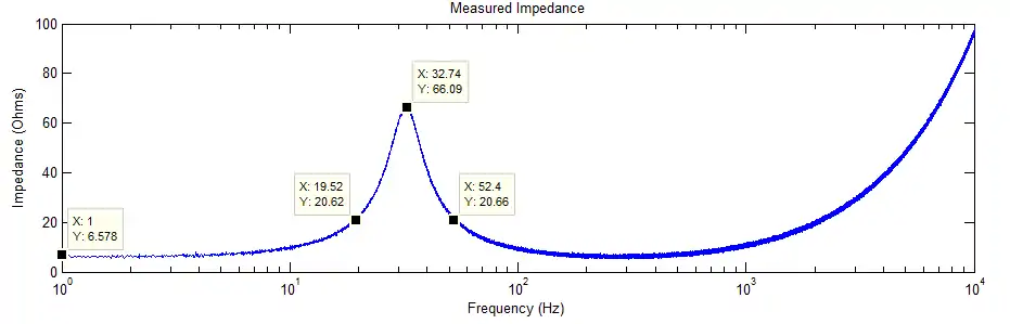 Using the mechanical impedance in the following equation, notice that the imaginary part will equal zero at resonance.