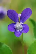 Violets are often divided into two groups based on the presence of a stem that is shared between the flowers and leaves. "Stemmed" or "caulescent" means that the flowers and leaves share an above-ground stem, whereas "stemless" or "acaulescent" violets have separate petioles (attached to the leaves) and peduncles (attached to the flowers) that arise from an underground rootstock. |