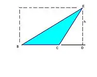 Usually, when drawing a triangle, we draw one side horizontally. This side is usually called the base. There is nothing special about the base. By turning your paper you can make any side into the base. There is no mathematical reason to call one side a base; we do it to make talking about the triangle easier. When you have a triangle and think of one of the sides as the base, then there is one corner of the triangle that is not on the base and this point is the furthest point on the triangle from the base. The height of the triangle is the line that is perpendicular to the base and goes through that furthest point. Sometimes instead of being called the height it is called the altitude of the triangle. (So if your teacher calls it an altitude, don't worry, it's really the same thing.) The length of the base and the height are the only two numbers you need to know when calculating the area of any triangle. Just multiply base and height and divide by two (or multiply it by a half if you like.) and you have the area of the triangle!