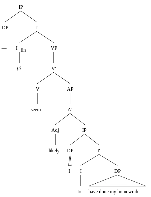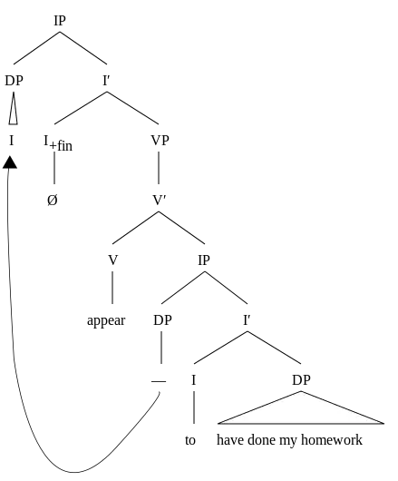 (6a) D-structure of (5a): — appear I to have done my homework (6b) S-structure of (6a): I appear — to have done my homework