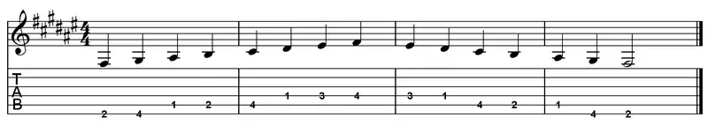 Anti-clockwise the root note of each scale forms the interval of a fourth with the root note of the following scale.