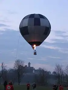 Figure 1.26: A hot air balloon transfers energy in the form of heat from the flame to the air particles in the balloon. The design of the hot air balloon takes this energy and changes it from heat to work.