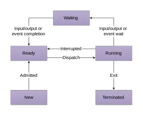 After the process is created, the operating system admits it to the ready state. When the CPU scheduling algorithm dictates, a process is dispatched to the running state.