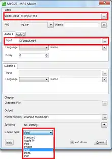 - Under video input, browse for your encoded ".264" video file. Leave the Name section blank for safety.