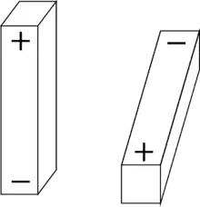 Two dipoles arranged in an orientation with a net-zero electrostatic interaction because the opposite-signed poles are at the same distance as the like-signed poles.