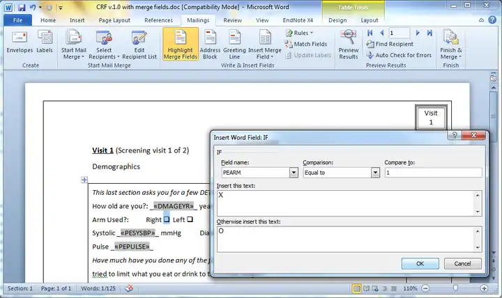 - Example Word CRF with merge fields and comments