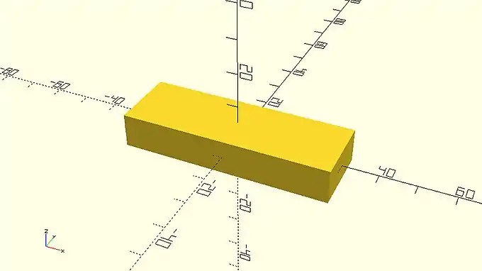 First create a cube with side lengths of 60, 20 and 10 that is centered on the origin.
