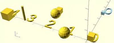 Numbers are the most important type of value in OpenSCAD, and they are written in the familiar decimal notation used in other languages. Eg, -1, 42, 0.5, 2.99792458e+8. [OpenSCAD does not support octal or hexadecimal notation for numbers.]