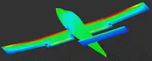 The global adjacency survey process guarantees that the jump of pressure across panels that are adjacent is correctly calculated even when the panels do not share the same nodes. The only requisite for this is that the nodes connecting the shared edges are sufficiently close to each other (closer than the SurveyTolerance parameter declared in Settings). A practical application for this feature is the modeling of fowler flaps or control surfaces. If this process would not be included in the calculation core, the continuity in the circulation along the two surfaces would be broken, and each panel would see an opening at the shared edge. The picture here next represents a practical example. Note how the shedding edges have been declared, and how the lift is increased behind the flap hinge line.