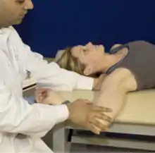 5. Clavicle internal rotation: the shoulder is abducted to 90o and rotated forward about the elbow