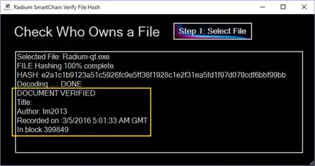 Registered Radium SmartChain users have the ability to publish their files' checksums to the SmartChain to allow their community a fault tolerant, integrity assured solution to safely downloading shareware.