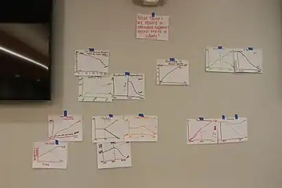 9. During steps 7-8, each graph is posted on the wall. The wall-builder tries to cluster the graphs meaningfully on the fly based on themes and variables.