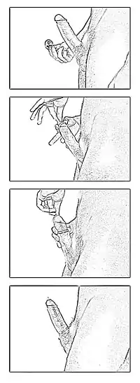• The penis should be guided through the outer ring to ensure that it is not pushed aside.