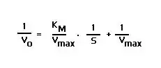 A graph of the double-reciprocal equation is also called a Lineweaver-Burk, 1/Vo vs 1/[S]. The y-intercept is 1/Vmax; the x-intercept is -1/KM; and the slope is KM/Vmax. Lineweaver-Burk graphs are particularly useful for analyzing how enzyme kinematics change in the presence of inhibitors, competitive, non-competitive, or a mixture of the two.