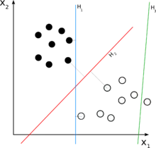 In 1995, Corinna Cortes and Vladimir Vapnik suggested a modified maximum margin idea that allows for mislabeled examples.[3] If there exists no hyperplane that can split the "yes" and "no" examples, the Soft Margin method will choose a hyperplane that splits the examples as cleanly as possible, while still maximizing the distance to the nearest cleanly split examples. The method introduces slack variables, , which measure the degree of misclassification of the datum