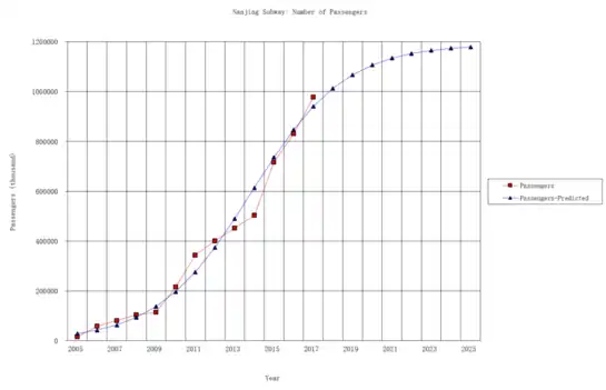 From the trend of the S curve, the Nanjing Metro should be in the end of growth phase. Current passenger traffic is in a period of rapid growth. From 2005 to 2009 is the birth phase of the Nanjing subway, and 2009 to 2017 is the growth phase of the Nanjing subway.