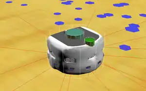 Simulated Khepera III robot with an odor and a wind sensor on top.