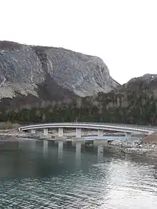 The Åselistraumen Bridge (Norwegian: Åselistraumen bru or Åselibrua[1]) is a bridge that crosses the Åselistraumen strait in the municipality of Bodø in Nordland county, Norway.[2] The concrete bridge is part of Norwegian County Road 17. It is 200 metres (660 ft) long and the longest span is 30 metres (98 ft).