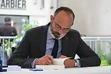 Édouard Philippe dedicating Impressions and clear lines in Fontainebleau, on 29 June 2021.