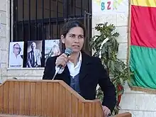 Îlham Ehmed (Arabic: إلهام أحمد), also rendered as Îlham Ahmed, is a Syrian politician from the Democratic Union Party[1] currently serving as the co-president of the Executive Council of the Autonomous Administration of North and East Syria (Rojava)[2][3] and member of the executive committee of the Movement for a Democratic Society (TEV-DEM) coalition.[4][5] Until July 2018, she was a co-chair of the Syrian Democratic Council (SDC),[6][5] a political wing of the Syrian Democratic Forces that acts as the legislature for Rojava.