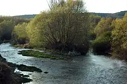 The Órbigo River is a river in the provinces of León and Zamora, Spain. It begins at the convergence of the Luna River and the Omaña River in the village of Secarejo, in the Cimanes del Tejar municipality. Decades ago, that confluence was some km. before, in the town of Santiago del Molinillo. It flows from north to south through the province of León and ultimately flows into the Esla River below Benavente.