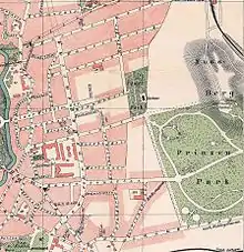 Two parks are located on the eastern end of the Östliche Ringgebiet, the Stadtpark and the Prinz-Albrecht-Park (short: Prinzenpark). The latter is named after Prince Albert of Prussia (German: Albrecht von Preußen), regent of the Duchy of Brunswick from 1885 to 1906.