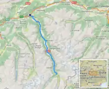 The Ötztaler Ache is a river in the district of Imst, Tyrol, Austria, a right tributary of the Inn. It flows through the Ötztal valley, a southern branch the Inntal. Including its source rivers Venter Ache and Rofenache, it is 66.5 kilometres (41.3 mi) long. The Rofenache is the runoff of the Hintereisferner, a glacier at the foot of the Weißkugel, Ötztal Alps. At Vent, near Sölden, it takes up the Niedertalbach and its name changes to Venter Ache. At the confluence with the Gurgler Ache in Zwieselstein, Sölden, the Ötztaler Ache proper is formed. It flows through Sölden, Längenfeld, Umhausen and Oetz before joining the Inn 8 kilometres (5.0 mi) east of Imst. The river is one of its bigger tributaries.